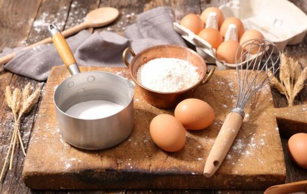 1、材料:面粉、牛奶、鸡蛋、油、盐和糖等