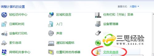 在修改为大图标显示方式之后,就可以找到一个文件夹选项。点击选择文件夹选项就可以蹦出对应的对话框。