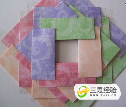 将彩色卡片叠加成如图3,并用透明胶固定,要注意摆放均匀哦!