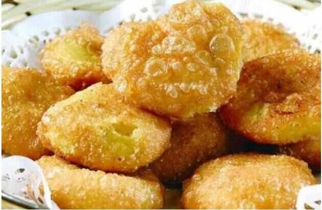 这是当地人用黄米面蒸熟之后再包上豆沙,放入油锅,炸熟做的一道美食,外观色泽金黄口感,吃起来外酥里糯,非常好吃。