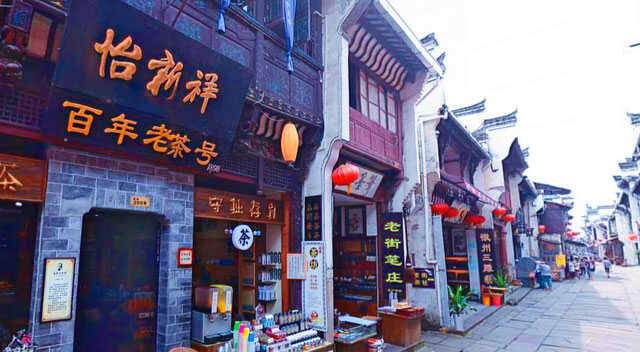 走进老街,是琳琅满目的商品,头次来玩的,会觉得眼花缭乱,目不暇接。这里各式各样的小玩意:有的是丝绸铺子,有的是笔墨纸砚,有的是茶屋茶馆,都有其各自的特色。若是雨天来到这里,你会发现店铺多是关着门的,街上的行人也不多。此时,如果撑着一把油纸伞,踏在这青石板路上,真的是别有一番风味。