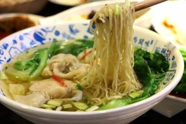 广式云吞面,将猪肉、虾肉打成泥做馅,包成一口一个大小的小馄饨,放入用鸡汤或高汤煮的面条中,本来只是带着点鲜味的面条陡然变得惊艳起来,让人鲜的欲罢不能。