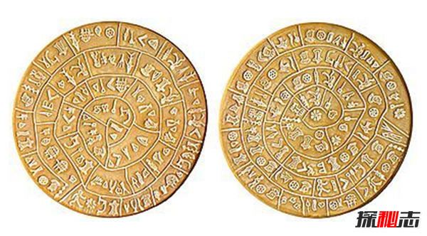 费斯托斯圆盘正反两面费斯托斯圆盘上的45个神秘符号,被视为是4千年前的诗作、经文、魔力碑文、乐章,甚至是人类最古老的标点符号,但该古物自一百年前出土以来,始终无人能解读圆盘上的符号所代表的意义。